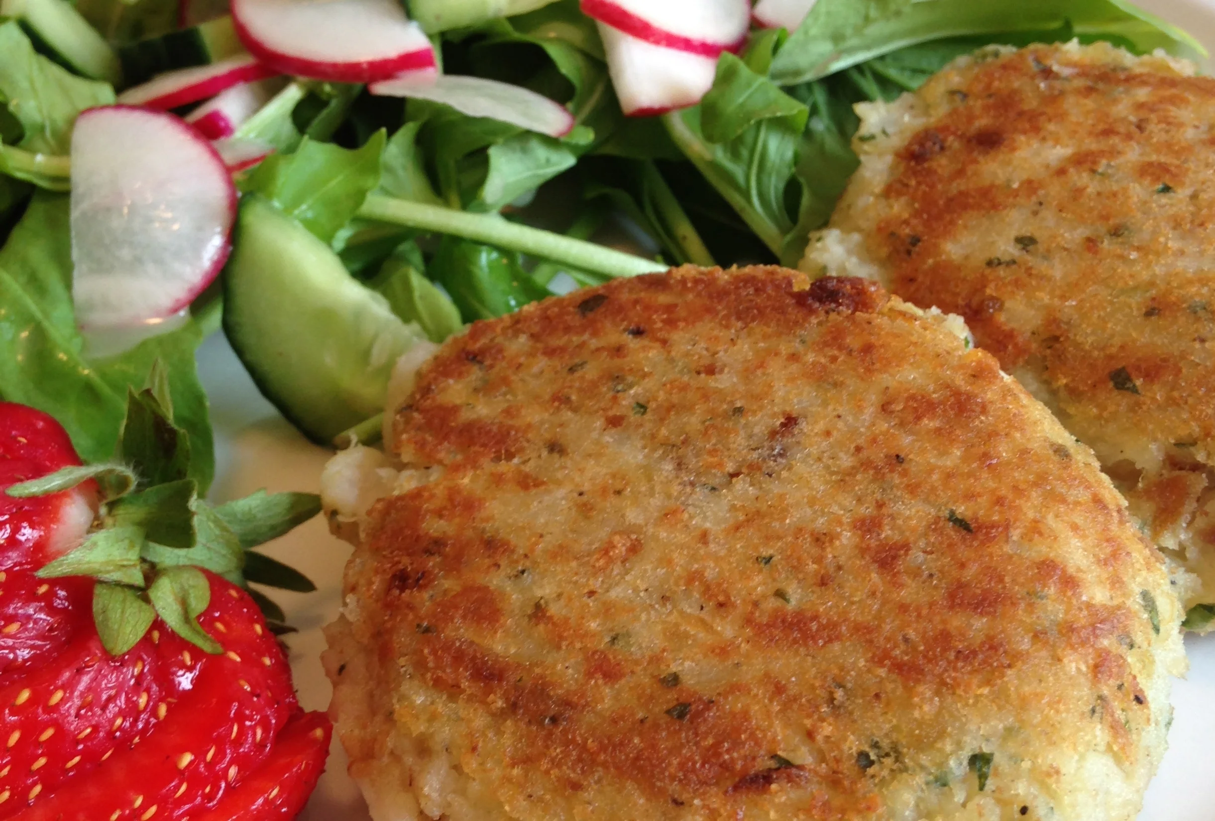 A must try! 2 of our famous salt-cod fish cakes served with our signature tomato jam & seasonal salad.